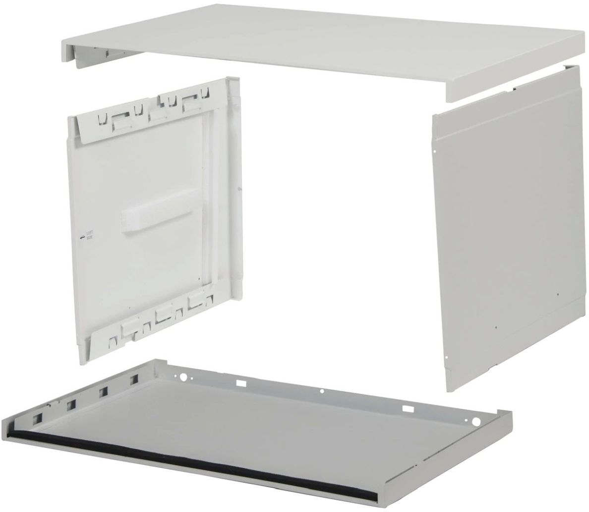 Solid-sided wall case fabricated of galvanized steel with baked enamel (white) finish. Panels on interior and between case and grille provide weather protection prior to installation of chassis.Read More